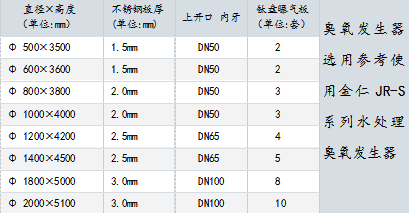 金仁臭氧氧化塔參數選型參考